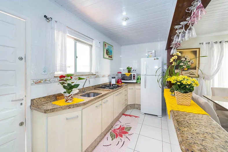 – Cocina completa con refrigerador, cocina, microondas y otros utensilios