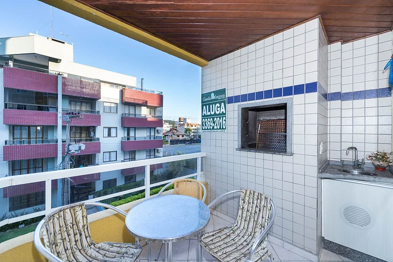 – Balcón con asador, mesa y sillas