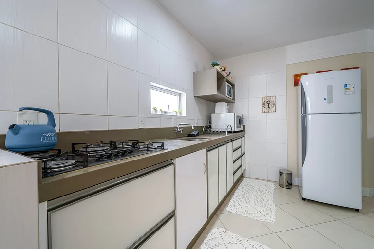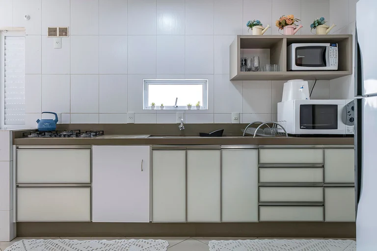 – Cocina completa con refrigerador, cocina, microondas y otros utensilios