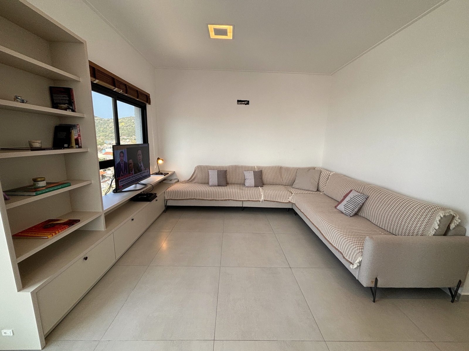 – Sala de estar con sofá y TV
