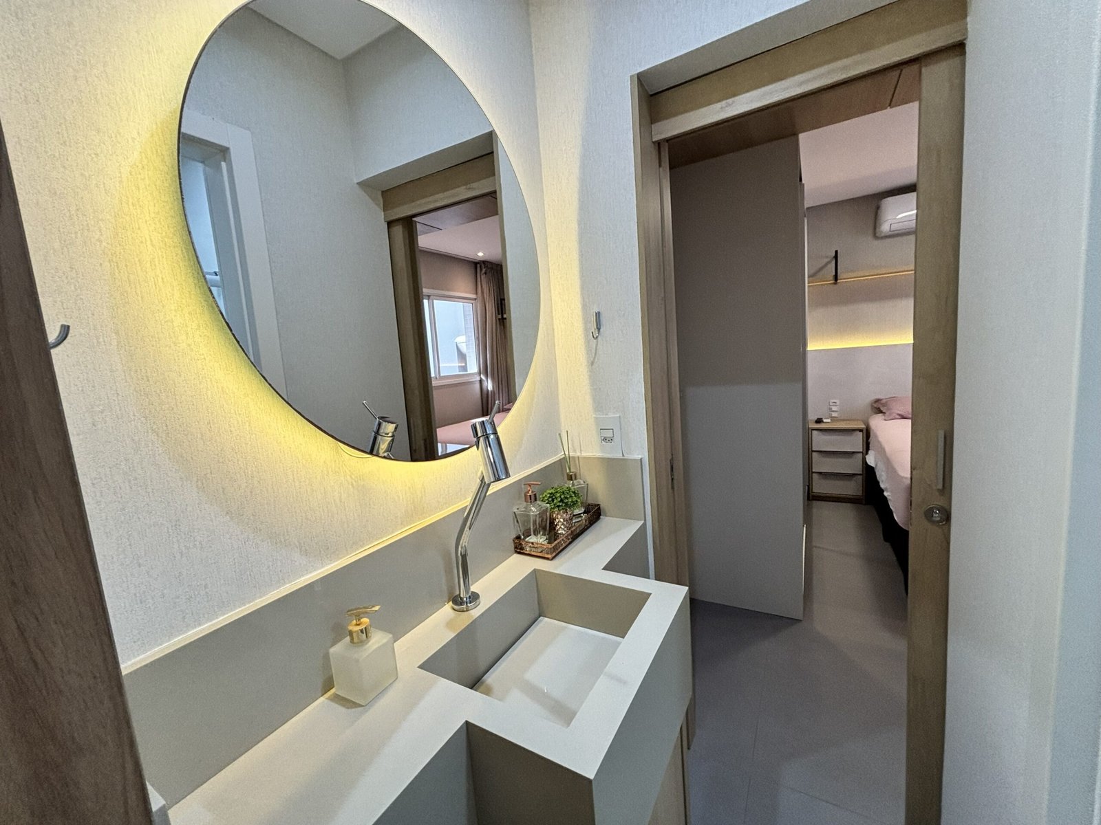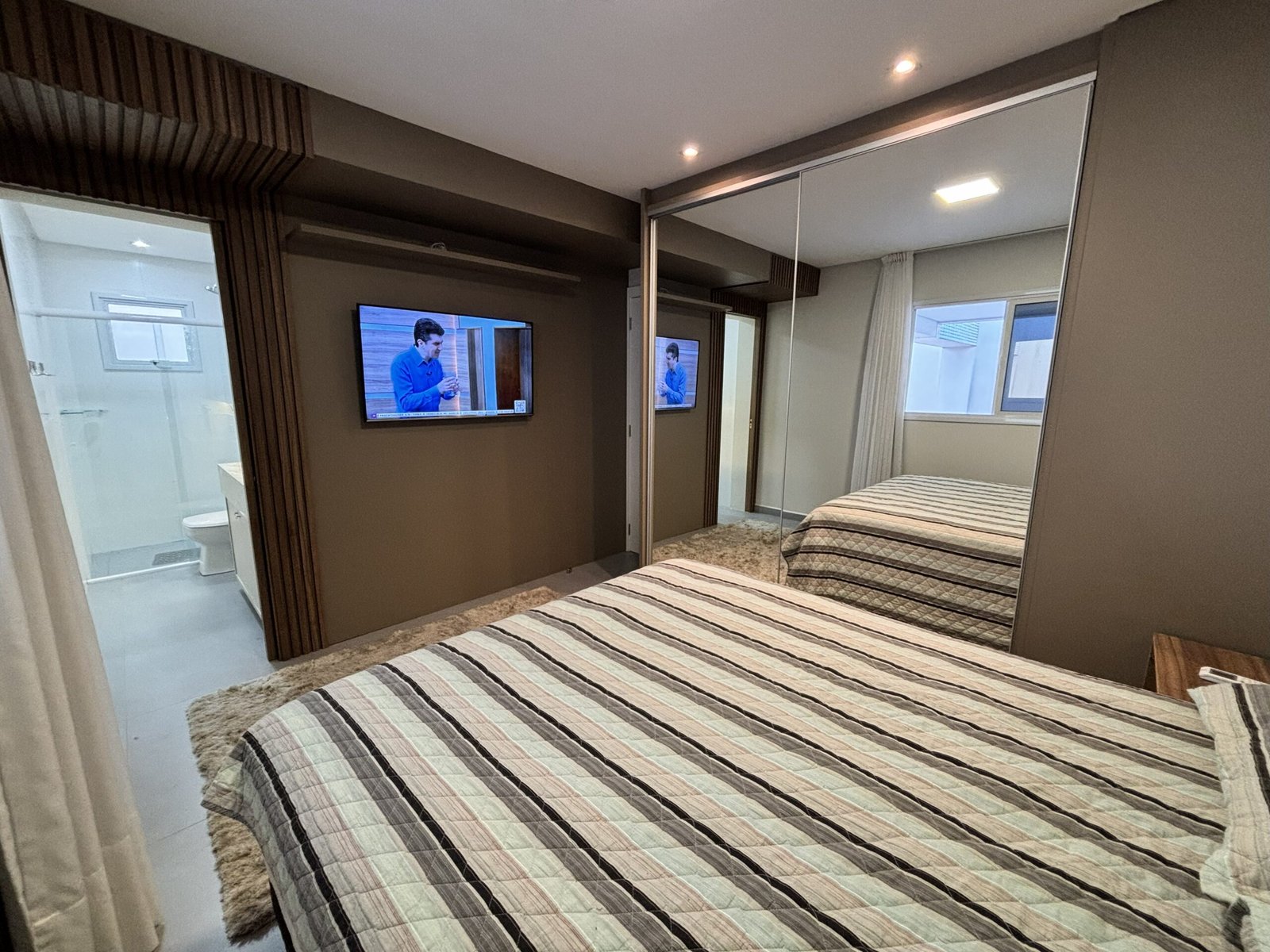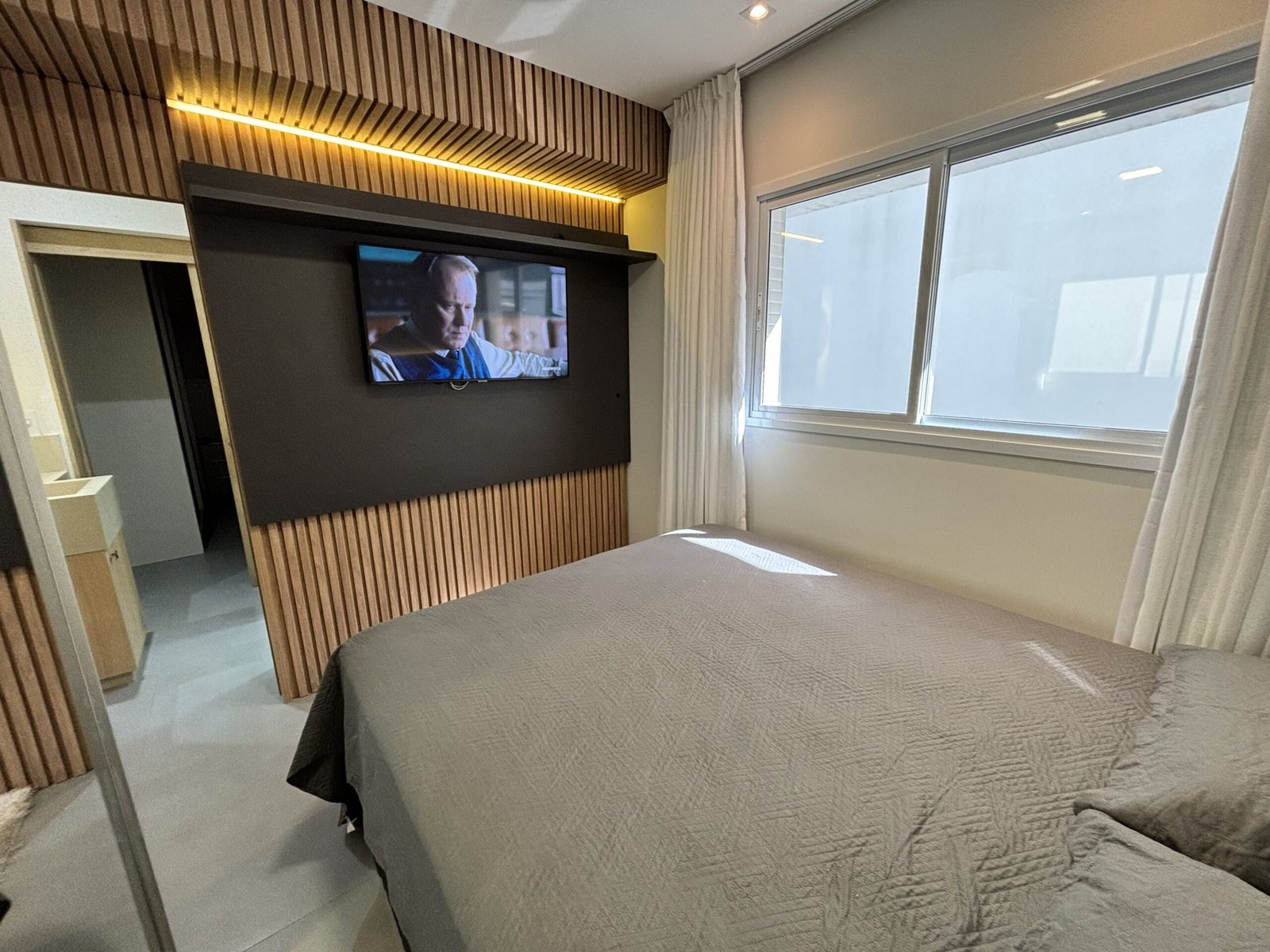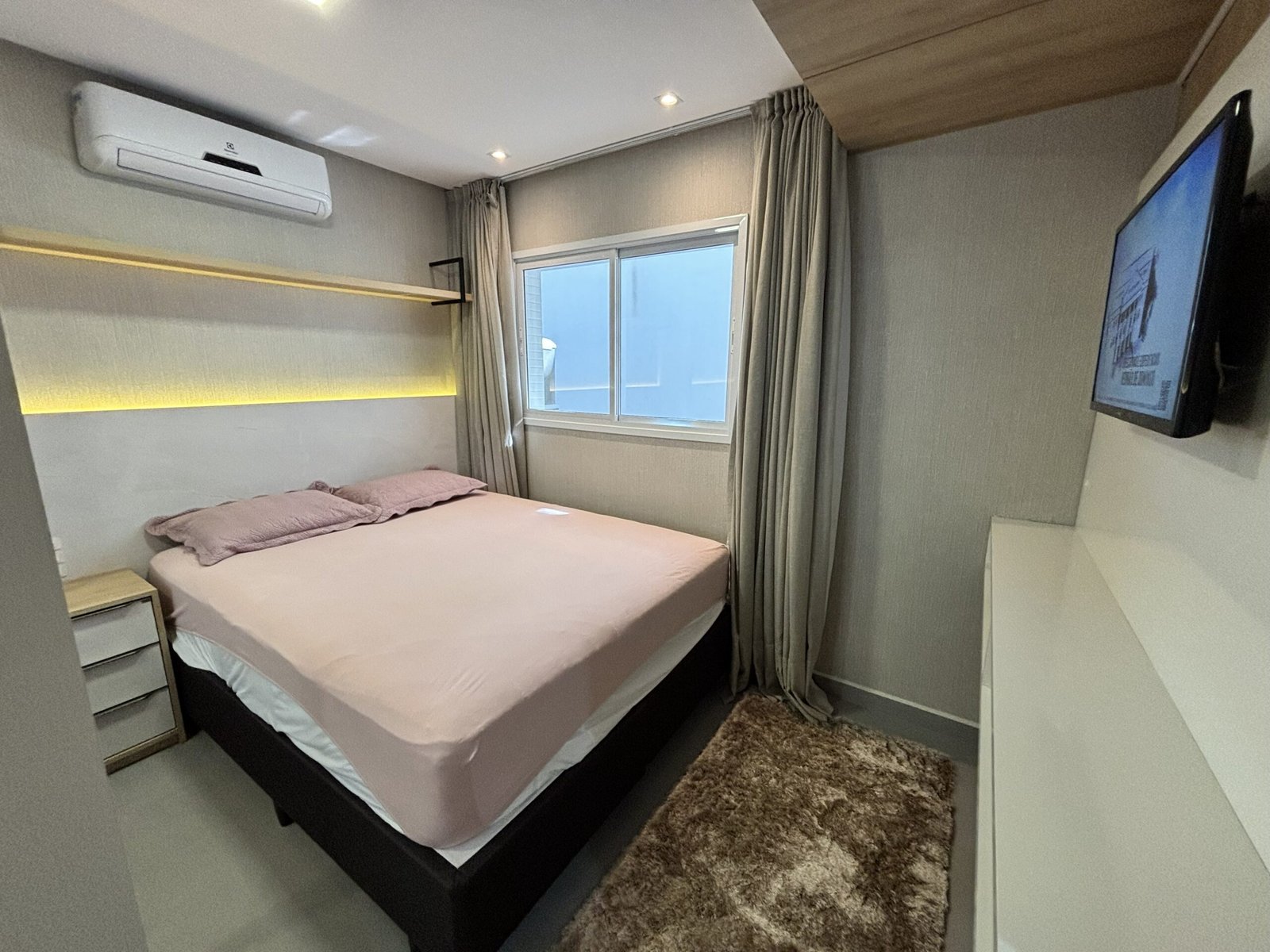 – Sala de estar con sofá, TV y aire acondicionado