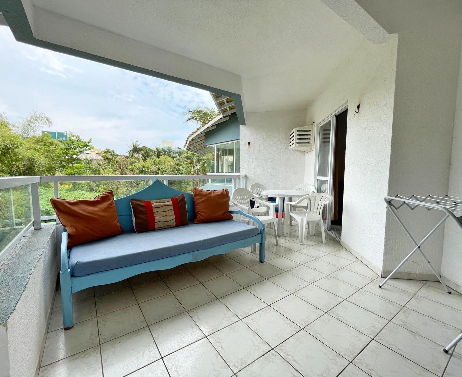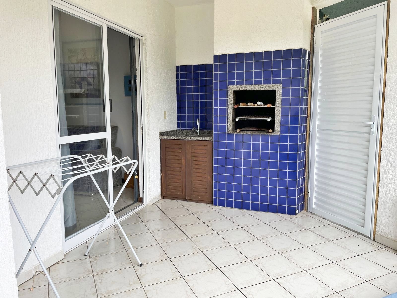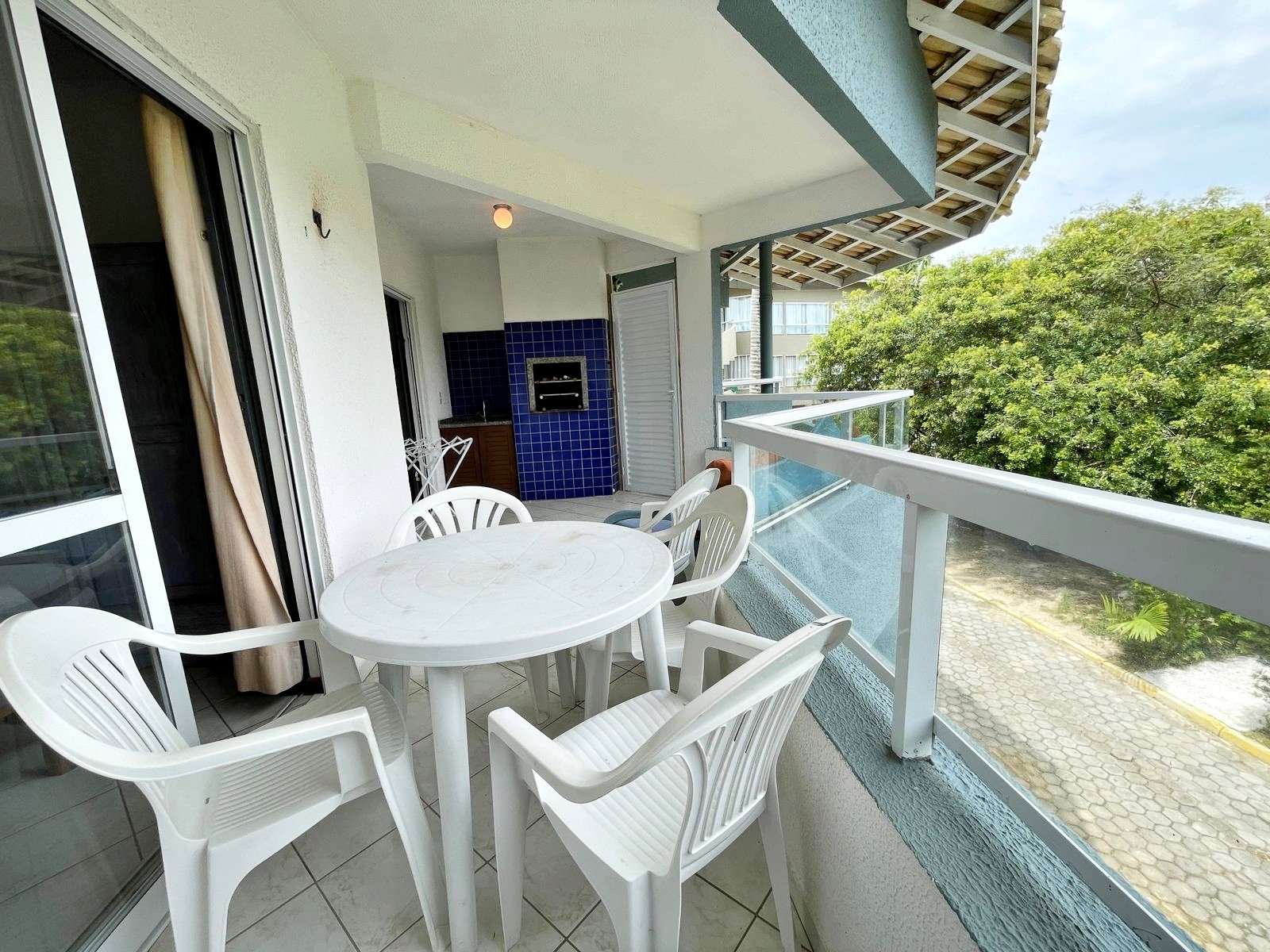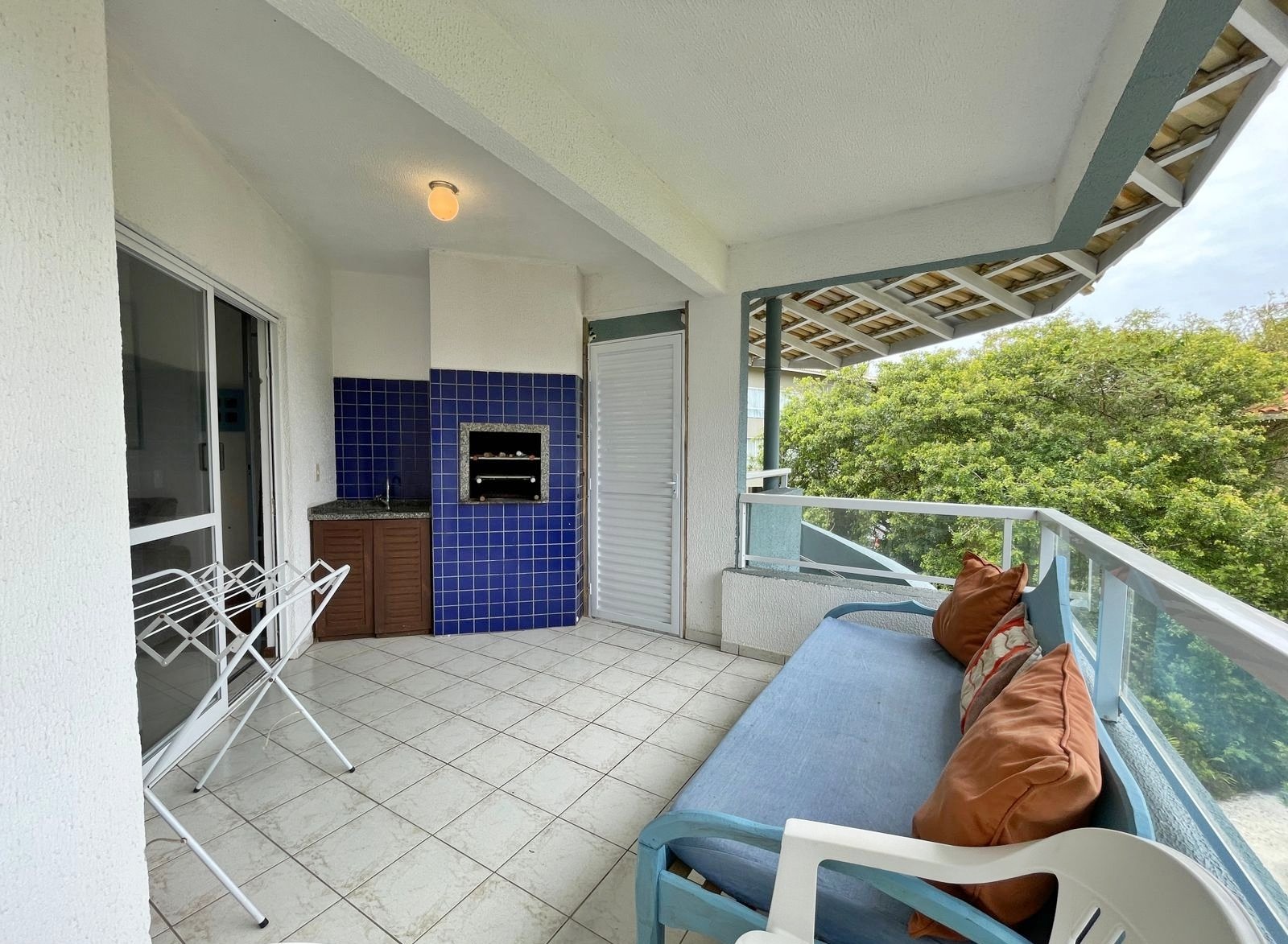 – Balcón con asador, sofá, mesa y sillas