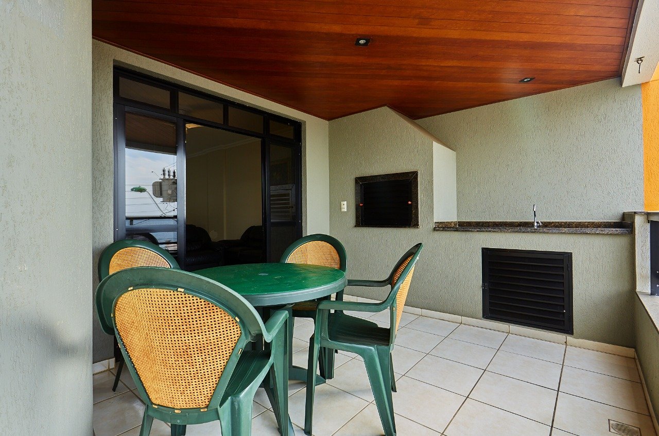 – Balcón con asador, mesa y sillas