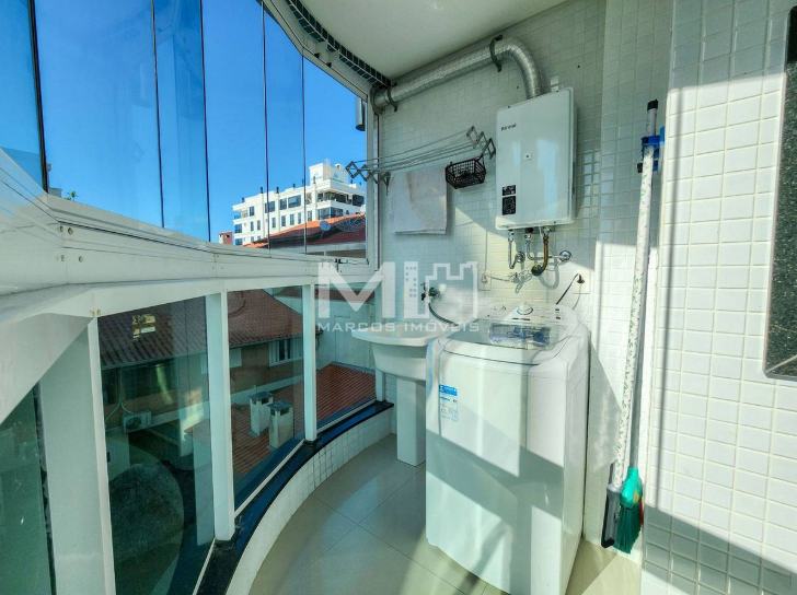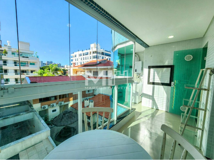 – Balcón con asador, mesa, sillas y cerramiento de vidrio