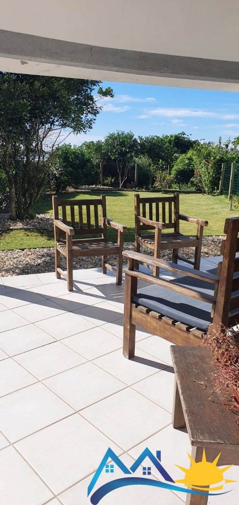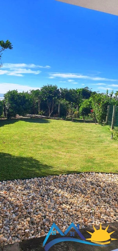 – Patio con césped de frente al mar